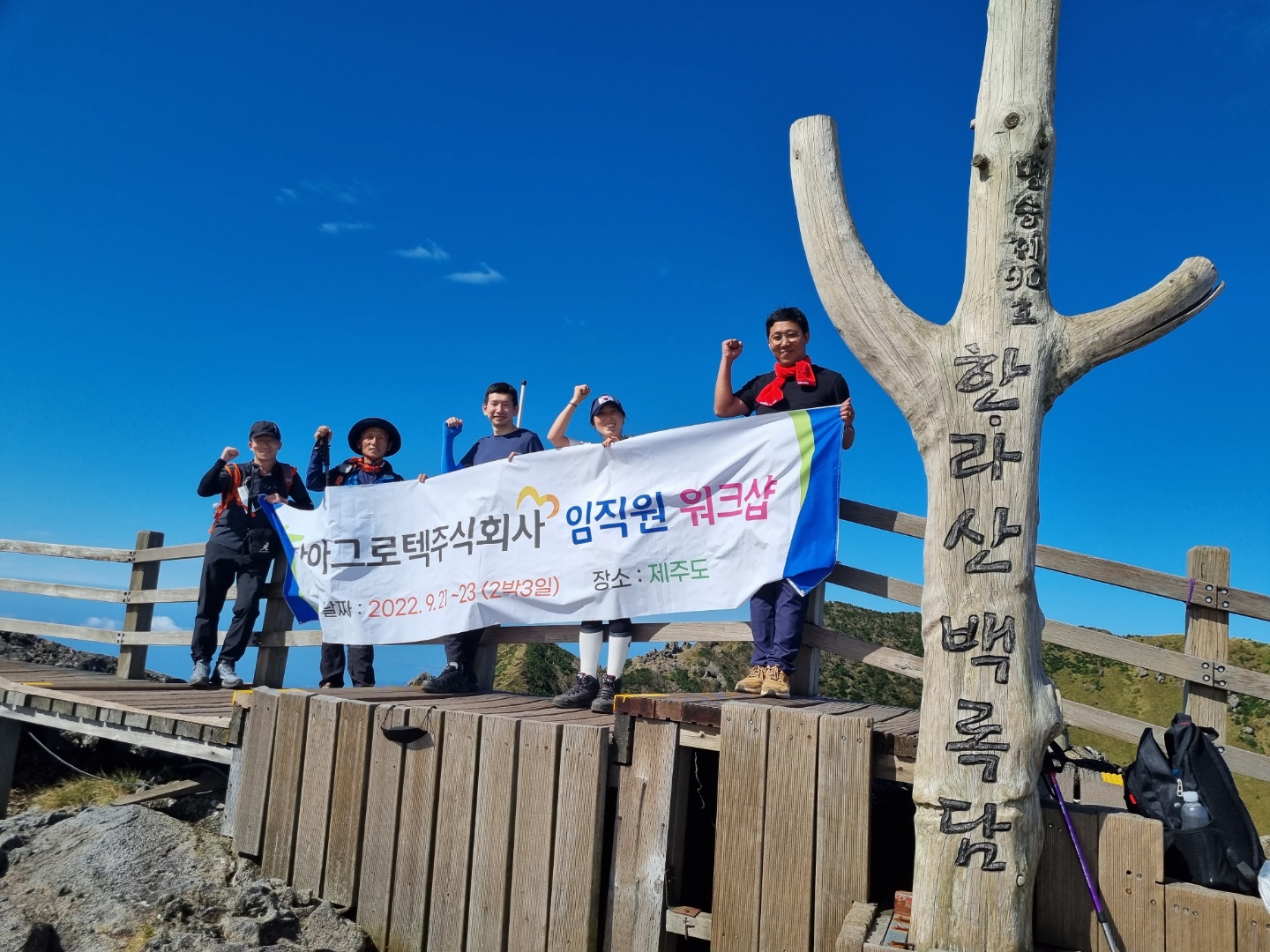 <ÇØ¹ß 1,950m ÇѶó»ê ¹é·Ï´ã¿¡¼ ±â³ä ÃÔ¿µÀ» Çϰí ÀÖ´Â Á÷¿øµé>